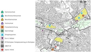 Einkaufszentrum, Spital, Freizeit, Sport, Schule, Bildung, Verkehr, Mobilität, Aufkommen, Shopping, Belastung, Klinik, verkehrsintensiv, Publikum, Besuch, verkehrserzeug, Gesundheit