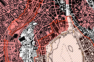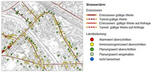 Lärmübersicht für Raumplanungverfahren (Bau- und Zonenordnung, Gestaltungsplan, Quartierplan). Lärmbelastete Gebiete, wo für Raumplanungverfahren weitere Abklärungen wie Lärmgutachten notwendig sind.
