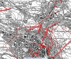 Schutzgebietsperimeter des Wirkungsbereichs der überkommunalen Schutzverodnungen, die vor Inkrafttreten des PBG (1980) erlassen wurden, heute aber, wo noch nicht durch neurechtliche Erlasse abgelöst, noch immer rechtskräftig sind.