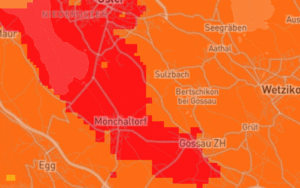 Ozon-Immissionen im Kanton Zürich für die Zeitstände 2020 bis aktuell. Es handelt sich dabei um Jahresmittelwerte in 100m x 100m räumlicher Auflösung. Quelle: <a href="https://www.bafu.admin.ch/bafu/de/home/themen/luft/zustand/daten/luftbelastung--historische-daten/karten-jahreswerte.html">Luftbelastung: Karten Jahreswerte</a>
