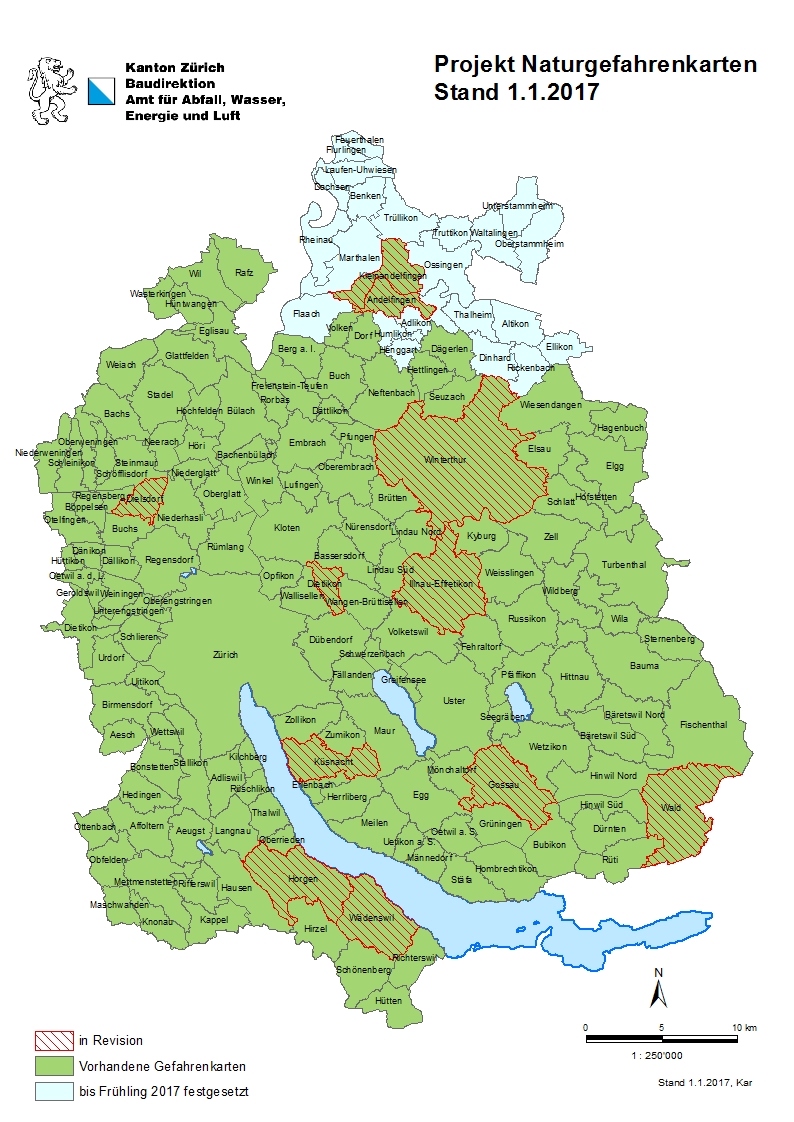 Darstellung der Naturgefahren im Kanton Zürich im Massstab 1:5'000 mit den zwei Hauptprozessen Hochwasser und Massenbewegungen