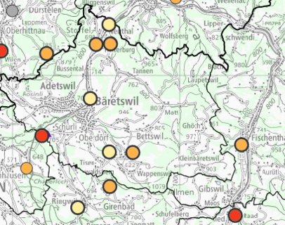 Amphibienzugstellen im Kanton Zürich (Auszug Datenbank von info fauna)