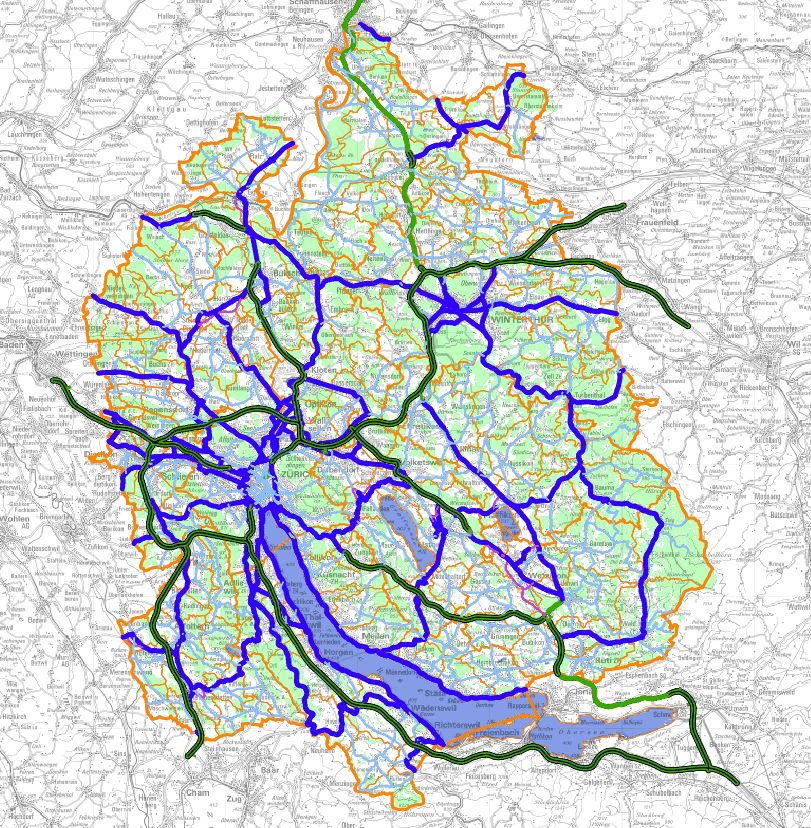Das Strassennetz umfasst alle National- und Staatsstrassen sowie die für das Verkehrsmodell wesentlichen Gemeindestrassen des Kantons Zürich. Der Datensatz enthält auch die Verkehrslastklassen (Wert für die Dimensionierung des Strassenoberbaus).